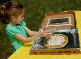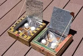 Reflective foil captures light, plastic wrap traps heat, and a black interior absorbs warmth. Together, they create a mini eco-kitchen right in your backyard.